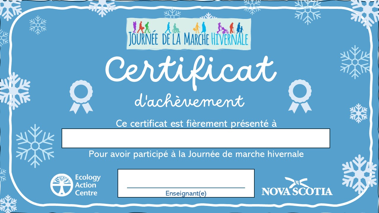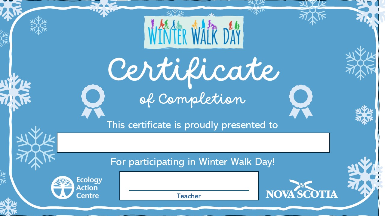 - Winter Walk Day Certificates of Completion (blank) in English and French